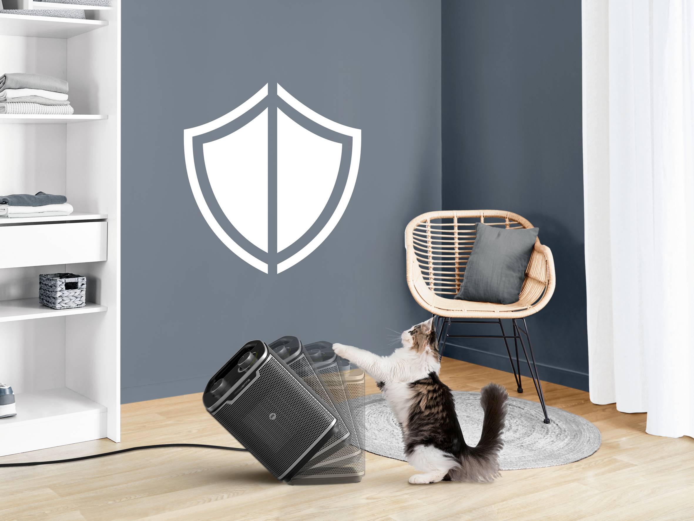 - Veilig in gebruik: dankzij wel 5 ingebouwde beveiligingen; Kantelbeveiliging, automatische uitschakeling, oververhittingsbescherming, brandvertragende materialen en een beveiligde stekker.