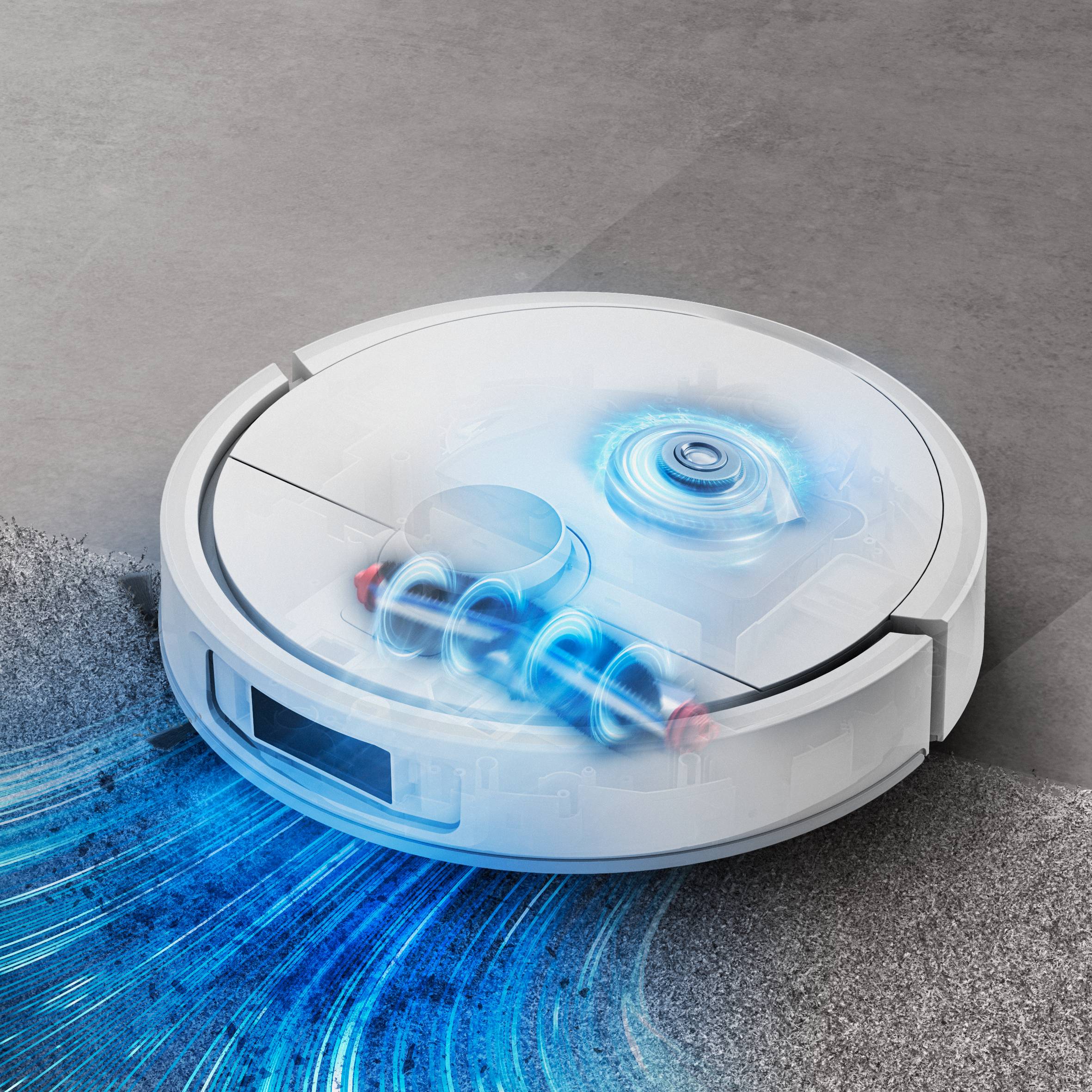 Schoonmaken wordt makkelijk met deze robotstofzuiger, die stofzuigt en dweilt tegelijkertijd. De krachtige motor, met een zuigkracht tot 10.000 Pa, zorgt ervoor dat stof en (dieren)haren verdwijnen. De roterende dweilen verwijderen vlekken en hardnekkig vuil, en dankzij de dweilverlenging worden hoeken en randen grondig gereinigd. Je hoeft je huis niet eerst op te ruimen, want slimme lasernavigatie detecteert en vermijdt obstakels. Ook je vloerkleden hoeven niet opgeruimd te worden, deze robot tilt de dweilen op tot 10,5 mm en past de zuigkracht aan voor grondige reiniging.